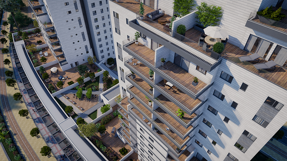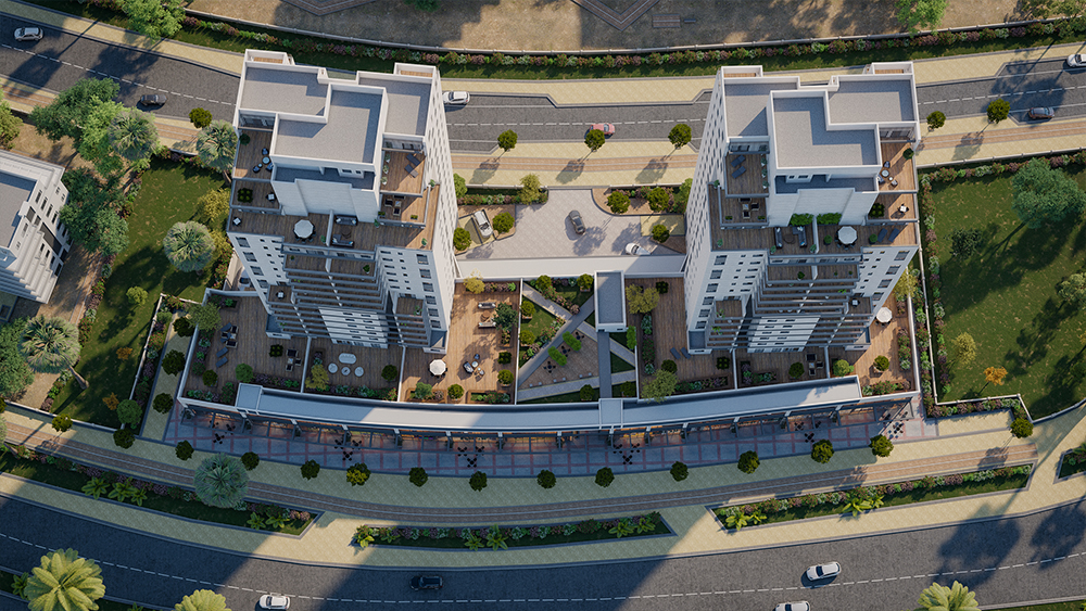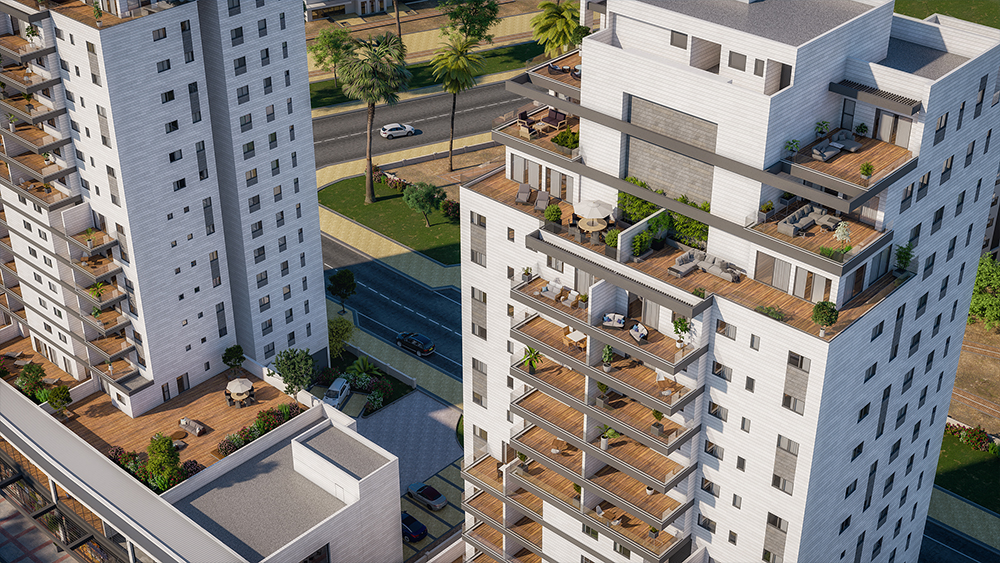 הבניינים בני 17 קומות מגורים וקומות מסחר.